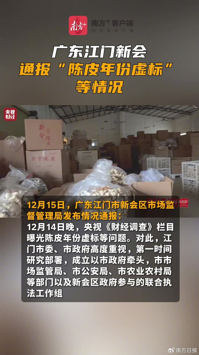 15日,江门新会通报“陈皮年份虚标”等情况,目前已依法对涉案主体的相关产品采取查封等措施,对涉嫌违法的经营行为立案调查,后续将严格依法处理,并及时向社会公开有关情况。详情>>