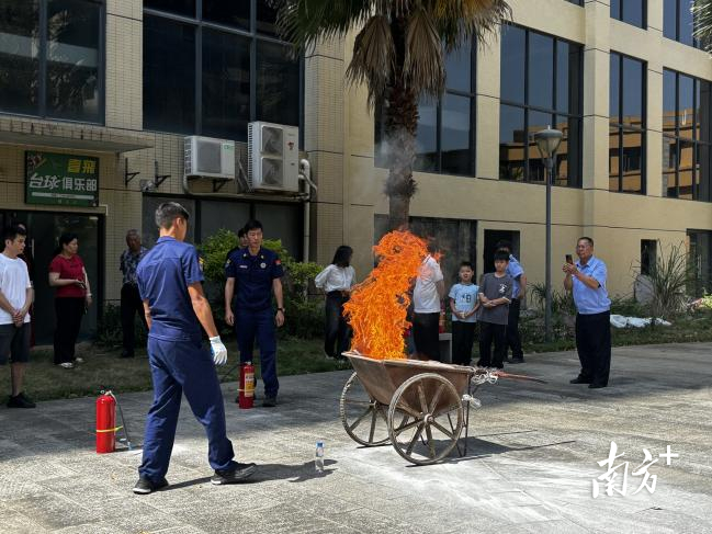 在河口社区的活力舞台前,一场“沉浸式”消防演练也火热上演。镇消防队队长特别针对商户集中的电动车辆停放问题,通过真实案例警示“电动车入户”“电池进电梯”的安全隐患,强调“楼道不停车、电池不入户”的重要性,并手把手教授灭火器使用技巧,讲解应急处置流程,让理论“干货”变成实操“真本领”。