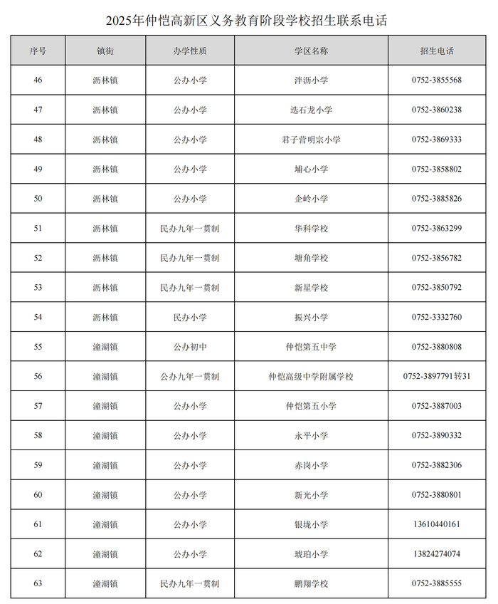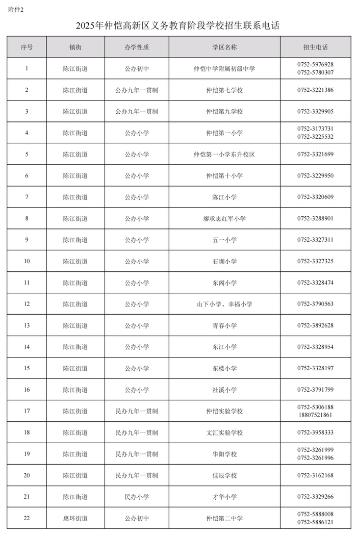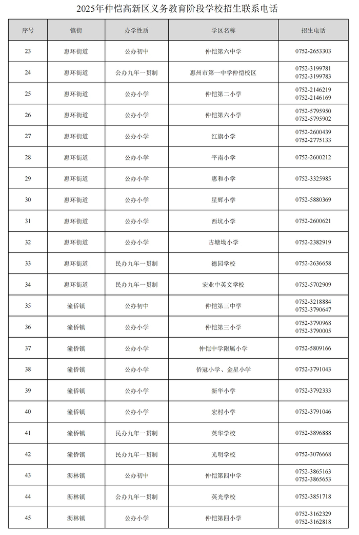 2025年仲恺高新区义务教育阶段公民办学校招收起始年级新生通告
