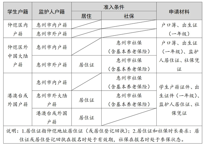 公办学校招收符合条件的仲恺户籍适龄儿童、少年和享受户籍生待遇的政策性照顾对象随迁子女。存在剩余学位的学校参加积分入学,积分入学招生通告在本批次户籍生招生工作结束后另行发布。