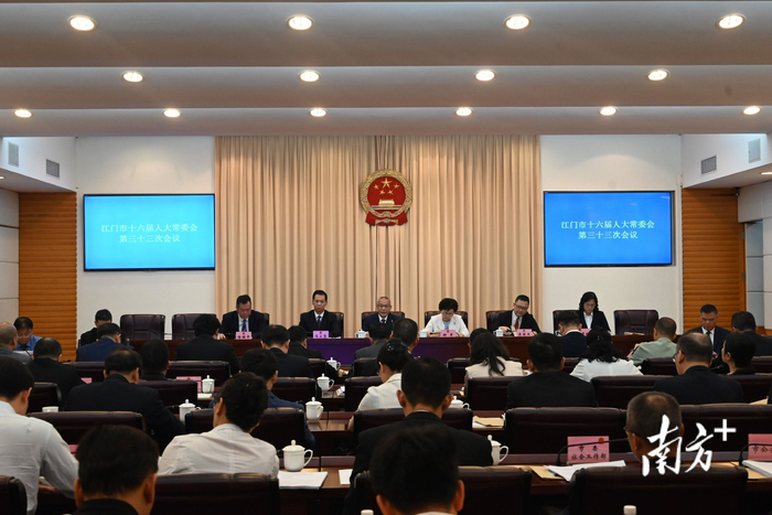 江门市十六届人大常委会第三十三次会议召开。依照宪法和地方组织法的规定,经江门市第十六届人民代表大会常务委员会第三十三次会议审议通过: