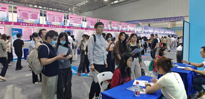 招聘会现场。招聘会现场,人工智能、机器人、新材料、新能源、航空航天、智能制造、生物医药等专业领域的应届毕业生、留学生、社会求职人员及有实习意愿的在校生纷纷递出简历,与心仪企业面对面交流。此次招聘会共有328家科技领军企业、专精特新企业、新型研发机构、创新平台、科研机构和金融机构通过线上线下的形式积极“揽才”,提供8122个优质就业岗位,吸引了众多大学生前来应聘。