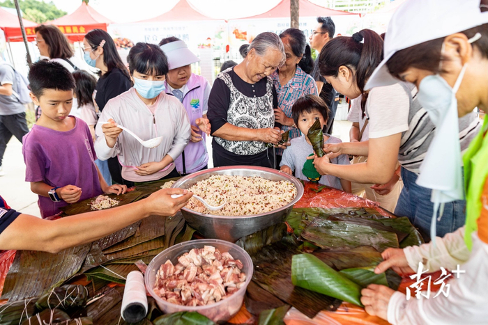 市民群众在活动中一起包粽子。丹荔嘉年华:为游客提供沉浸式田园体验