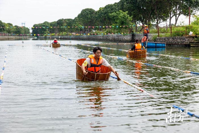 比赛中,有参赛选手失衡落水,却笑着爬起大喊:“这水干净,当冲凉啦!”引发满场欢笑。有的选手抵达终点后笑言,“划桨时看见水里荔枝树的倒影,像在画中游!”
