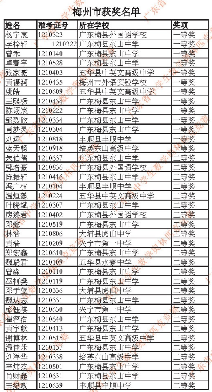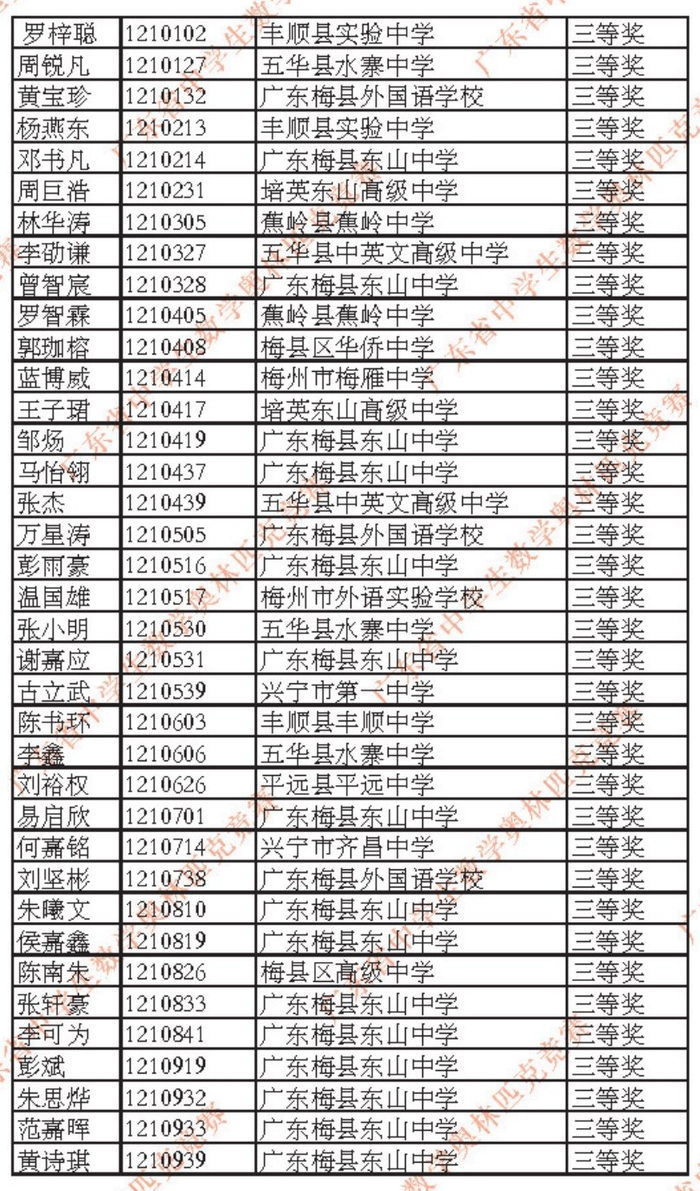 记者从梅州市教育局获悉,近期,2025年广东省中学生数学奥林匹克竞赛获奖名单公示,梅州市全市高中学校17所,共116名学生获得省赛奖项,较2024年获奖90人增加26人,获省奖人数创新高,位列全省第7位。