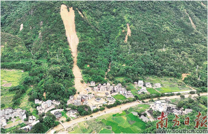 15日凌晨4时,茂名信宜市贵子镇中和村联二自然村的山谷间,一声沉闷的“哗啦”巨响,打破了暴雨夜的沉寂。山体裹挟着泥水倾泻而下,冲击到山脚下村庄。