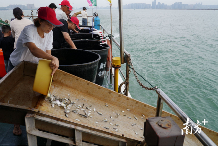 渔业资源增殖放流可有效补充海洋渔业资源,增加渔民捕捞收入,丰富海洋生物多样性,是一项利国利民的措施。2011年至2024年,汕头一共投入渔业资源增殖放流资金超过1998万元,放流海水鱼苗2300余万尾,虾苗45000余万尾。主要放流苗种涵盖黄鳍鲷、黑鲷、真鲷、笛鲷、黄姑鱼、斑节对虾、长毛对虾等本地优势物种,有效补充本地海域水生生物种群资源。