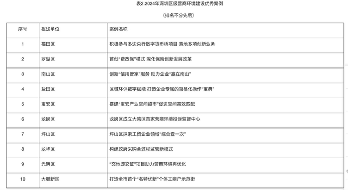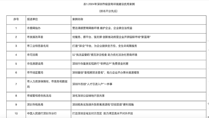 近期,深圳市发展改革委(市营商办)组织开展主题为“共建营商、共赢未来”的2024年深圳市营商环境建设优秀案例征集评选活动,旨在积极展示2024年深圳市营商环境建设成效,营造全社会共同参与营商环境建设的良好氛围,这是深圳市连续第四年开展营商环境建设优秀案例评选。本次活动经网络展示和专家评审,评选出十件2024年深圳市级营商环境建设优秀案例、十件2024年深圳区级营商环境建设优秀案例,目前结果已正式揭晓。