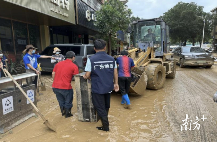洪涝退去,险情未消。广东多地受灾后,淤泥堆积、地质灾害风险激增。按照广东省地质局统一部署,省矿产资源勘查院(以下简称“矿勘院”)迅速组织肇庆怀集办事处地灾应急党员突击队响应号召,以“汛”为令、向“险”而行,全体队员迅速集结,冲锋在清淤排障、地灾巡查一线。