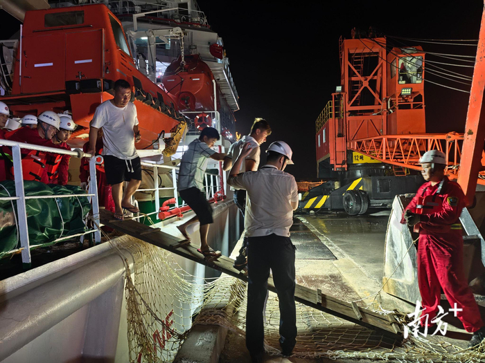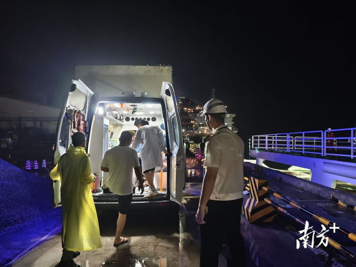 经过近4小时紧张救援,22日0时20分,“南海救113”轮安全顺利将伤员转移至岸上救护车送医。目前,该渔民无生命危险,正接受后续治疗。