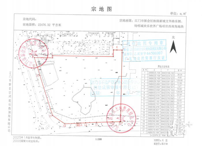 6月27日,江门市公共资源交易中心发布《江门市JCR2025-100(新会18)号国有建设用地使用权网上挂牌出让公告》,位于江门市新会区枢纽新城文华路东侧、钧明城欢乐世界广场项目西南角的约33亩地块以2.37亿元起拍价挂牌出让,这是继今年5月份公布钧明欢乐世界广场二期地块分割调整规划后的首次挂牌出让。