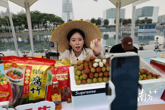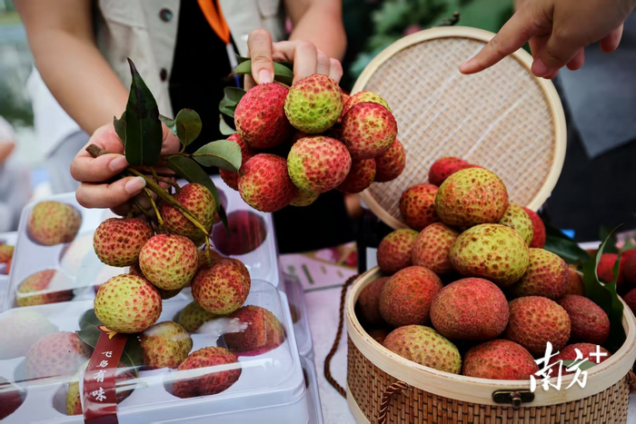 当天,省农业农村厅发布了“广东省荔枝采购导图”,广东不同地区、不同品种的荔枝分布情况及上市时间一目了然。现场还举行了网络达人宣传,启动“千万达人、十万村播”助“荔”大行动,让手机变农具、直播变农活、流量变农资,持续为销售赋能。