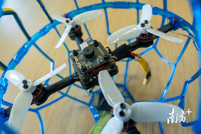 四轴竞速无人机外罩直径20厘米镂空防护架在空中展开攻防。无人机足球既考验选手的物理空间感知与即时决策,又依赖程序调试、设备维护等科创能力。林熠华教练介绍,无人机足球涉及飞控、灯控,舵机等的把控,还有电极、电压、电路这些基础原理,所有学员都要熟悉掌握,并对自己的无人机进行日常维护保养。无人机足球项目一方面可激发青少年对航空航天科技的兴趣,另一方面也在无形中培养他们的科创能力。