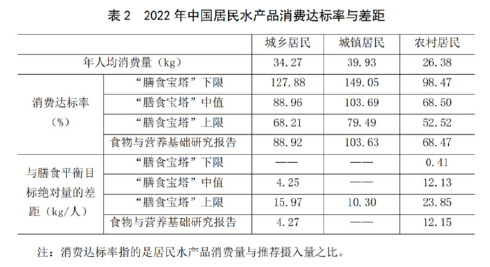 总体上,我国居民水产品消费量尚未达到《食物与营养基础研究报告》等的平衡膳食标准,距达标还需增加食用水产品供给602.82万吨。