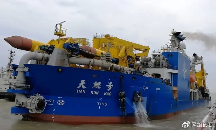 天鲲号的前辈——天鲸号也不容小觑。虽然绞刀功率"只有"4000千瓦,每小时"只能"吸取4500立方米的泥沙,输送距离"只有"6公里,但在南海造岛工程中同样立下了汗马功劳。据统计,天鲸号在短短8个月内,就在南海5个礁盘上进行了吹沙填海作业。