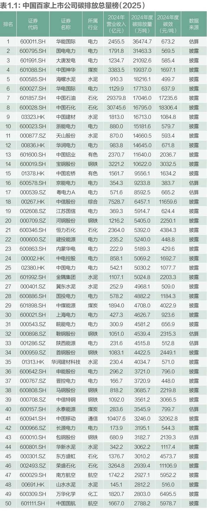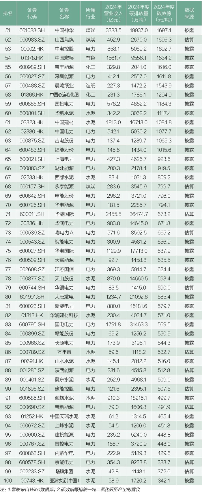 中国百家上市公司碳排放榜(总量榜&碳效榜)