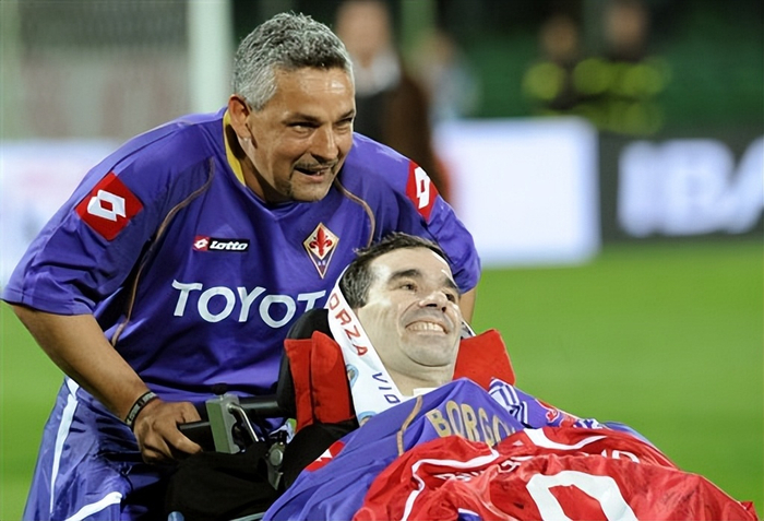 2.7万名球迷来到弗兰基球场。比赛开始前,头发花白的巴乔身披紫色10号球衣,推着固定在轮椅上的博戈诺沃出场。博戈诺沃不仅失去了行动能力,而且无法说话,需要机器帮助呼吸,并通过计算机把眼球运动翻译成语言与外界交流。