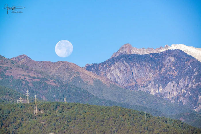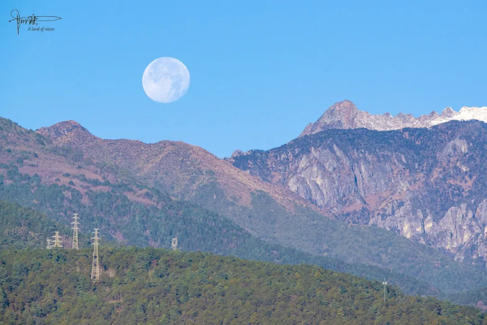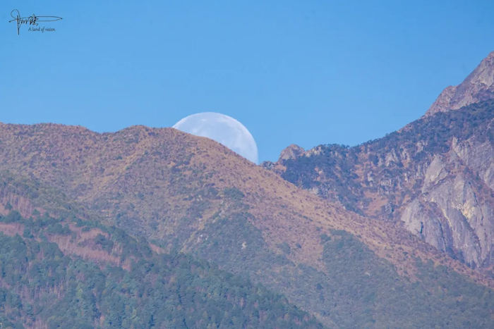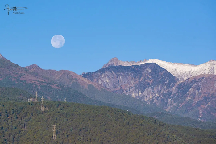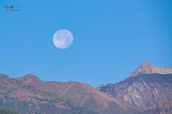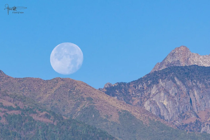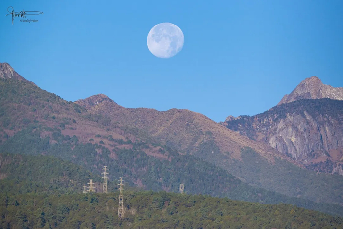大理的月亮是温暾的,看上去甚至有些陈旧,像是从古画绢帛上洇出的一抹浅色,虽然这时候已是上午9点多钟,却牢牢粘贴在蓝天之上,很舍不得落下。或许是感受到了远处长焦镜头的窥探,引发其羞涩难当的情絮,终于才以肉眼可见的速度,缓缓藏到了苍山身后。