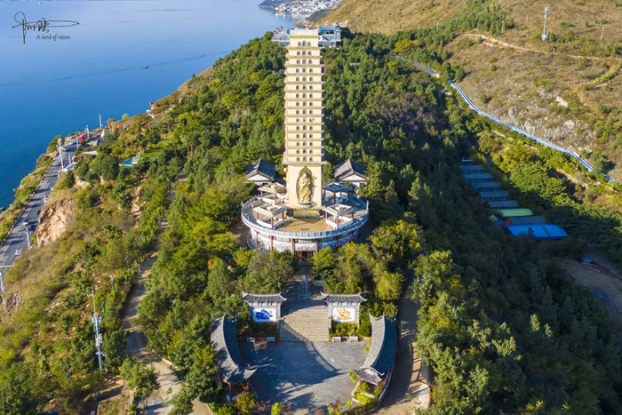 当我们来到大理旅居或者环洱海游玩时,在东边山腰上巍然屹立的“罗荃塔”总是那么引人注目,在我看来,它无疑是海东最耀眼的地标建筑,每时每刻都仿佛在向路过的游客招手。让我略感意外的是,塔内其实设置有能够直达第十层的电梯,再徒步攀登三层楼后就能到达塔顶,从而可以俯瞰整个罗荃半岛乃至苍山洱海的全景,堪称是整个洱海及周边地区的最佳观景点。
