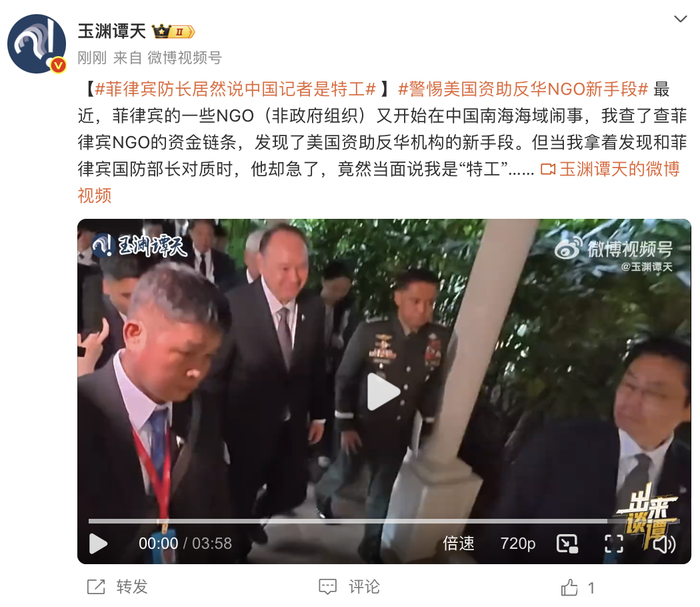 最近,菲律宾的一些NGO(非政府组织)又开始在中国南海海域闹事,记者查了查菲律宾NGO的资金链条,发现了美国资助反华机构的新手段。但当记者拿着发现和菲律宾国防部长对质时,他却急了,竟然当面说记者是“特工”……