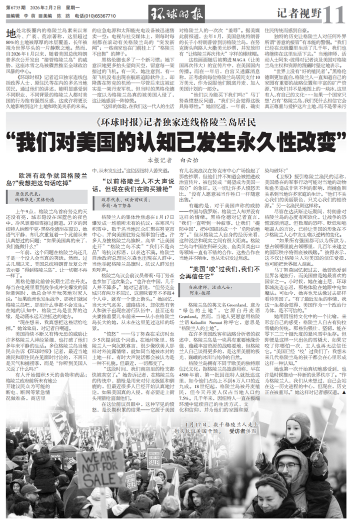 《环球时报》记者独家连线格陵兰岛居民:“我们对美国的认知已发生永久性改变”