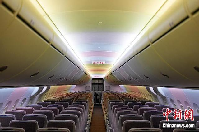 今天执行商业首飞的C919飞机为164座两舱布局,公务舱8座,经济舱156座。客舱内饰、旅客座椅、机载娱乐系统和飞机外部涂装做了定制化设计。