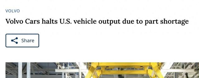 【环球网科技综合报道】6月1日消息,据外媒报道,沃尔沃汽车暂停其位于美国南卡罗来纳州里奇维尔的装配厂生产,原因是汽车行业供应链持续中断,导致关键零部件短缺。