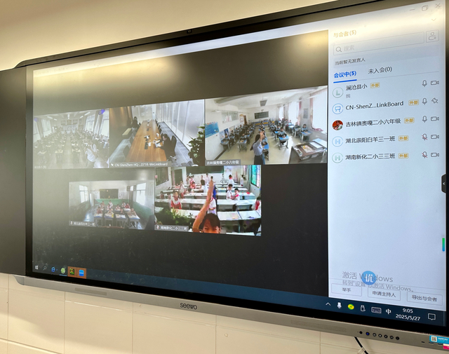 四年级一班教室里已坐满身着整洁校服的学生,等待着在深圳的华为公司人工智能专家史启权博士,正准备进入"探秘AI"五地共学课堂。