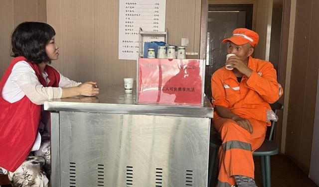 “这种天气,干活儿就像是在‘蒸桑拿’,汗水不断,嗓子都快冒烟了。”正在铺路的工人们边擦汗边感叹道,“工会送来的这杯绿豆汤真是清凉又暖心!”