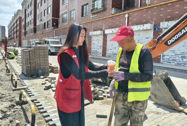 与此同时,在胜利街天盛社区的建筑工地上,顶着高温辛勤劳作的建筑工人们也收到了一份特别的关怀。7月11日,天盛社区联合工会与辖区的“暖心食堂”携手,将食堂变为“解暑点”,免费为环卫工人、工地上的建筑工人、快递员以及外卖小哥等户外劳动者送绿豆汤。社区工作人员体恤他们工作繁忙,还特意组成“送汤小队”,将一杯杯清凉的绿豆汤直接送到环卫点、工地旁、快递员和外卖员的手中。