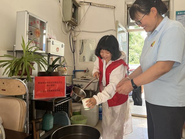 据了解,为了给在高温下辛苦劳作的户外劳动者提供一个歇脚解暑的地方,兴庆区解放西街海宝社区联合工会联合辖区物业和企业工会的“微驿站”于7月11日共同设立了“清凉补给站”,免费为户外工作者提供冰镇绿豆汤。