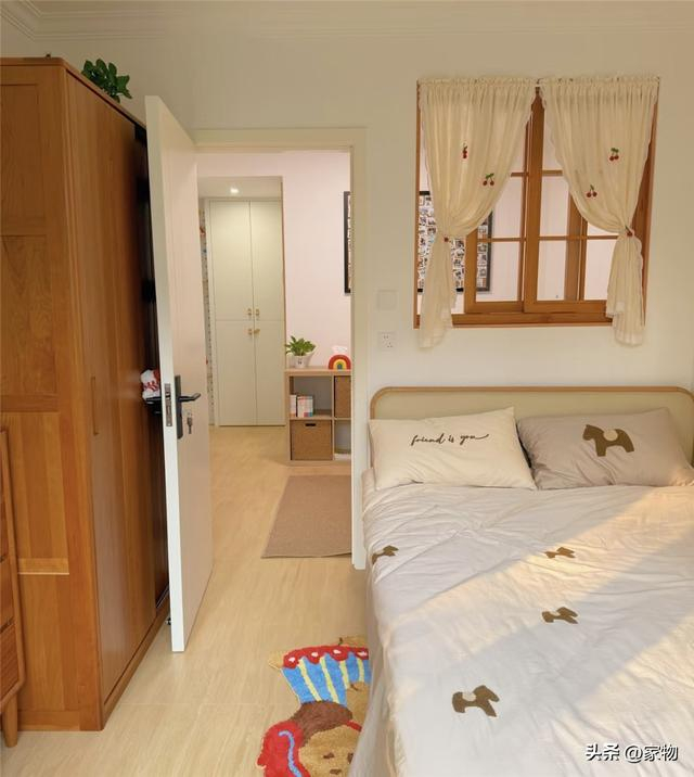 次卧室留给孩子当儿童房,虽然小了一些,但还是可以摆上一张双人床,从小学用到大学都没问题。