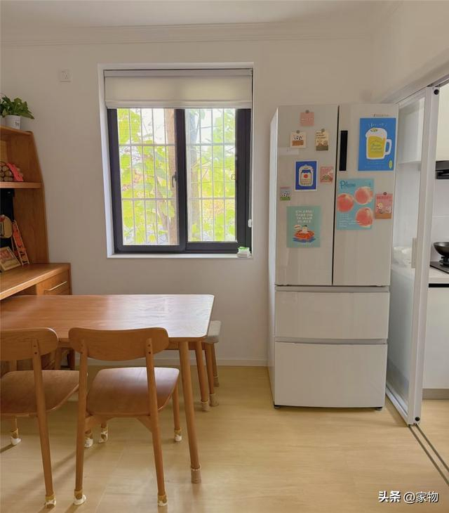 不得不说,家里虽然是个只有60㎡的小户型,但采光真的是非常不错,不仅厨房卫生间都带窗,算是全明户型,餐桌的位置甚至还有一扇外窗,再加上楼层较低,窗外的绿荫也为小家内增添了几分生机与活力。