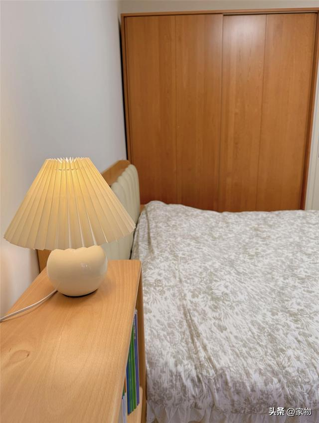 至于衣柜,按照屋主的喜好选择了实木的成品柜子,虽说不做定制柜会浪费一部分头顶的纵向空间,但总归也是为了卧室内的整体氛围感考虑,无关对错,只是喜好抉择问题。