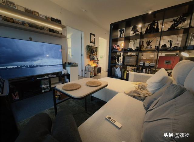 别看现在的客厅面积缩小了一半,但反而成为了这位男生独居小家最舒服的地方之一。