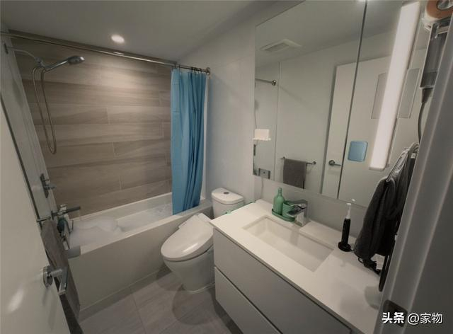 至于卫生间嘛,则是一间没有窗户的暗卫,但我没想到的是,它居然还能放下一个全身位置的大浴缸,用浴帘进行隔断,也算实现了干湿分区,洗澡的时候不会弄得到处都是水。