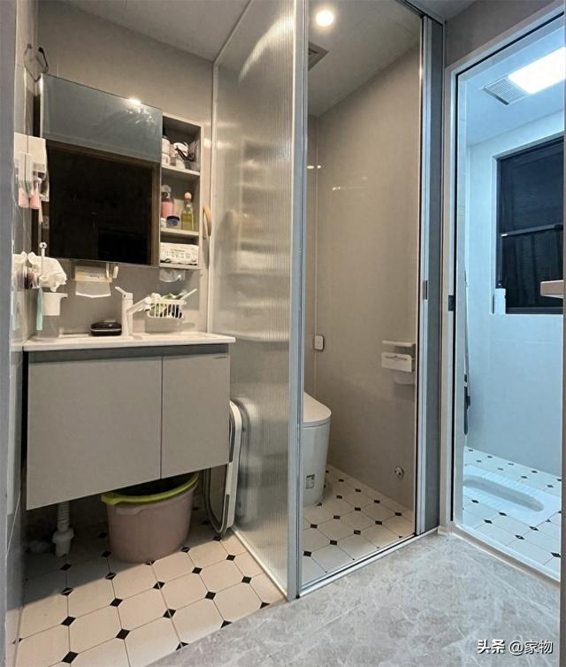 但最近,我却发现了一位湖南姑娘(@木木的小家)的巧妙装修——她将原本的3㎡卫生间一分为二,改出了一个蹲便、一个坐便,瞬间让家里变成了“两卫”户型。
