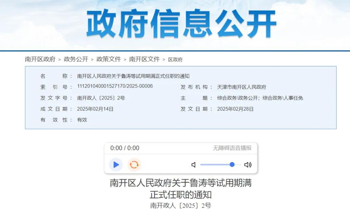 韩红娟任南开区人民政府政务服务办公室副主任;