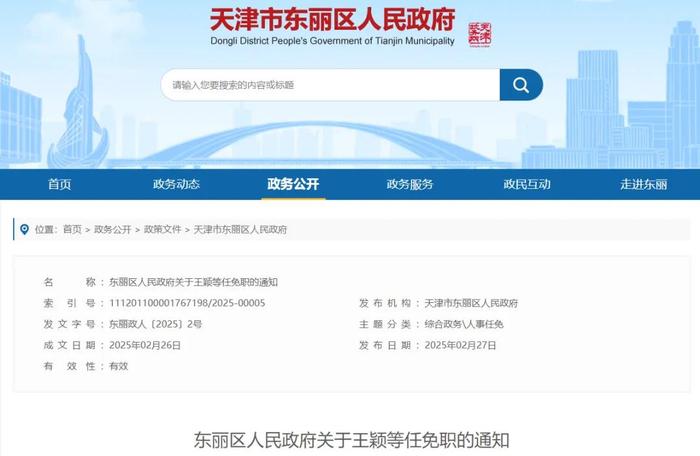 王鑫任天津市东丽区商务局副局长(挂职,1年);