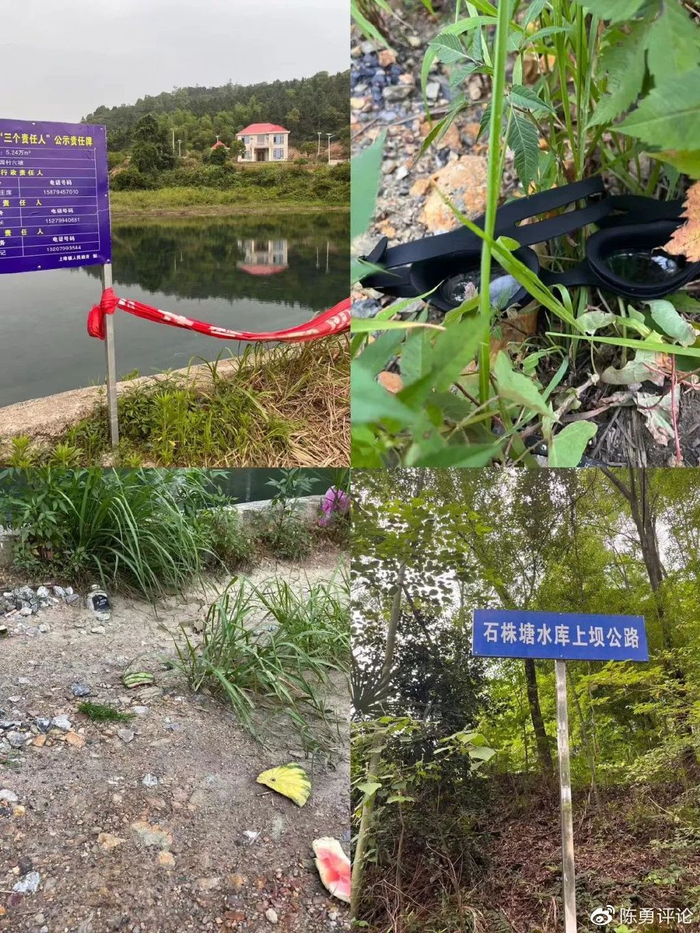 5月21日,《陈勇评论》在现场观察到,石株塘水库沿山体而下,大致分为三级,最后一级形成的池塘深约2米,水体清亮通透,没有什么浑浊物。正是因为水质优良,才有方圆几公里的人前来游泳,池塘周围还散落着护目镜和西瓜皮。