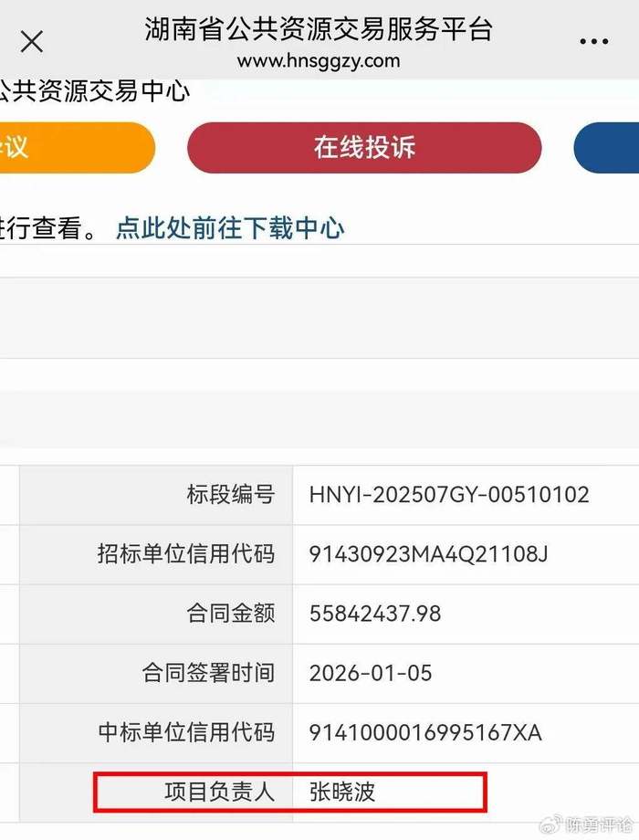 而就在2025年12月,《陈勇评论》发表《定标过程中涉嫌多项违法行为,益阳五千多万的工程招标被指有猫腻》一文后,也是这位张姓工作人员向平台投诉称《陈勇评论》“发布误导性文章,借知情人口吻散布不实言论,严重损害我公司及上级单位声誉和形象。”