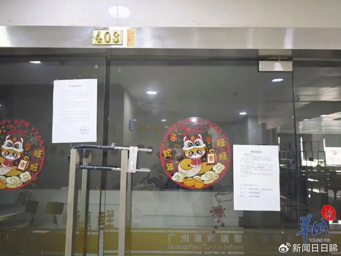 根据报料人提供的信息,记者来到了白云区永平街同泰路的一栋商务楼,被投诉对象广州德群信息咨询有限公司就在这栋楼里。走出四楼电梯即可看到该公司大门已上锁,内部空无一人。