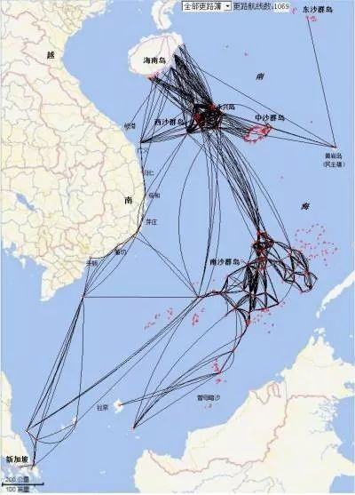 《南海天书》著述20余册更路簿涉及1069条更路航线(示意图,其中断续线简化处理)02