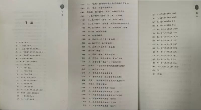 《南海“更路簿”数字化诠释》目录《南海“更路簿”数字化诠释》首先以地理学、航海学知识为背景,提出适合于南海区域的地球投影模型,并推演出系列岛礁距离与航向角计算模型及误差估计模型,为后续更路数字化与数据计算提供基础。笔者通过多种方式验证计算模型的科学性与可靠性,进而对《南海天书——海南渔民文化诠释》(后称《南海天书》)著述的近3000条更路进行数字化处理,得到大量统计结果,利用计算机绘制系列更路图,其中472条航路图和1069条航线图如图1-2所示,直观呈现南海更路簿的航海历史。