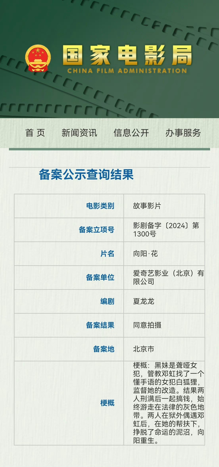 电影《向阳·花》 即将开机导演:冯小刚主演:赵丽颖、王菊、兰西雅、程潇