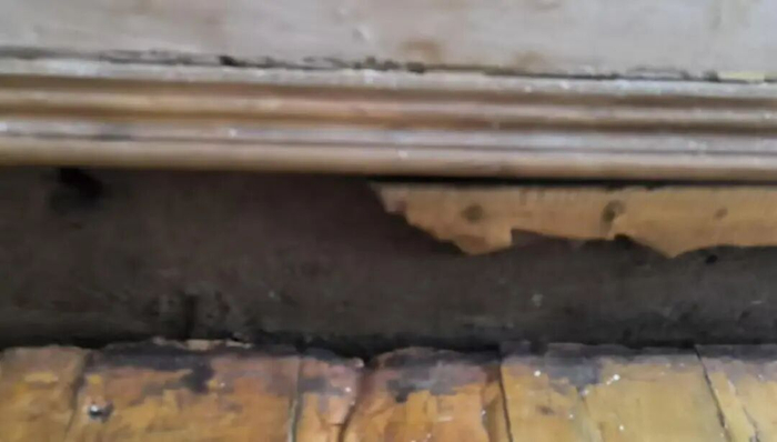 更让她糟心的是,近期漏水还出现了新变化,“开始流黑色的臭水,能闻到异味”。持续的漏水已对朱女士家的物品造成明显损坏:卧室木质柜子因长期受潮变形发霉,卫生间门口的瓷砖也因泡水开裂。“每天都要找盆桶接水,打扫四五次。晚上担心漏水泡坏电器睡不踏实,生活完全被打乱了。”朱女士说。