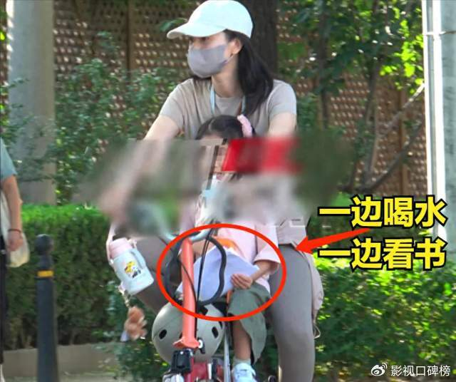 不知道高圆圆骑的这一辆单车,是否专门购买来接送女儿的,前面安装了儿童座椅。女儿坐在妈妈的前面,很舒适,自己在看书,不吵不闹。细细看,单车头还挂着一个水壶。母女俩的在一起的画面很温馨,很有爱。