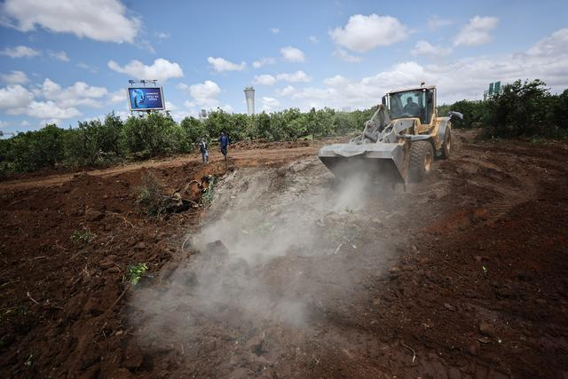 5月4日,在以色列特拉维夫本-古里安国际机场附近,工作人员清理导弹袭击现场。新华社发(贾马尔·阿瓦德摄)据以色列媒体报道,以方动用“箭”式反导系统以及美军部署的“萨德”反导系统拦截来袭导弹,但未能成功。新华社记者在袭击现场看到,导弹在机场主航站楼附近炸出一个数米宽的弹坑。