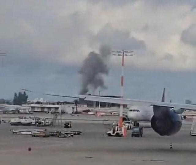 这张5月4日的视频截图显示,以色列特拉维夫本·古里安国际机场附近遭导弹袭击后升起黑烟。新华社发新华社北京5月5日电 以色列总理办公室4日晚发表声明说,针对也门胡塞武装当天早些时候对特拉维夫的本-古里安国际机场发动导弹袭击,以色列将对该组织及其盟友伊朗进行报复。