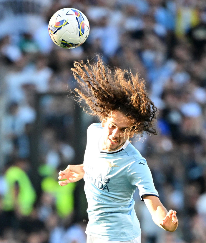 5月10日,拉齐奥队球员贡多齐在比赛中争顶。